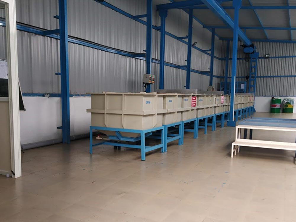 BRS houses the equipment and expertise required to carry out the process of zinc phosphating for precision metal parts. Zinc Phosphate is an inorganic compound that appears as a white powder. Phosphating is a process in which a steel surface is converted to iron phosphate. Barely soluble metal phosphate layers are formed on the base material. A zinc phosphate coating is used as a pre-treatment before coating with paint, to increase the friction property of sliding parts, resist against corrosion and wear-and-tear and as protection against galling.